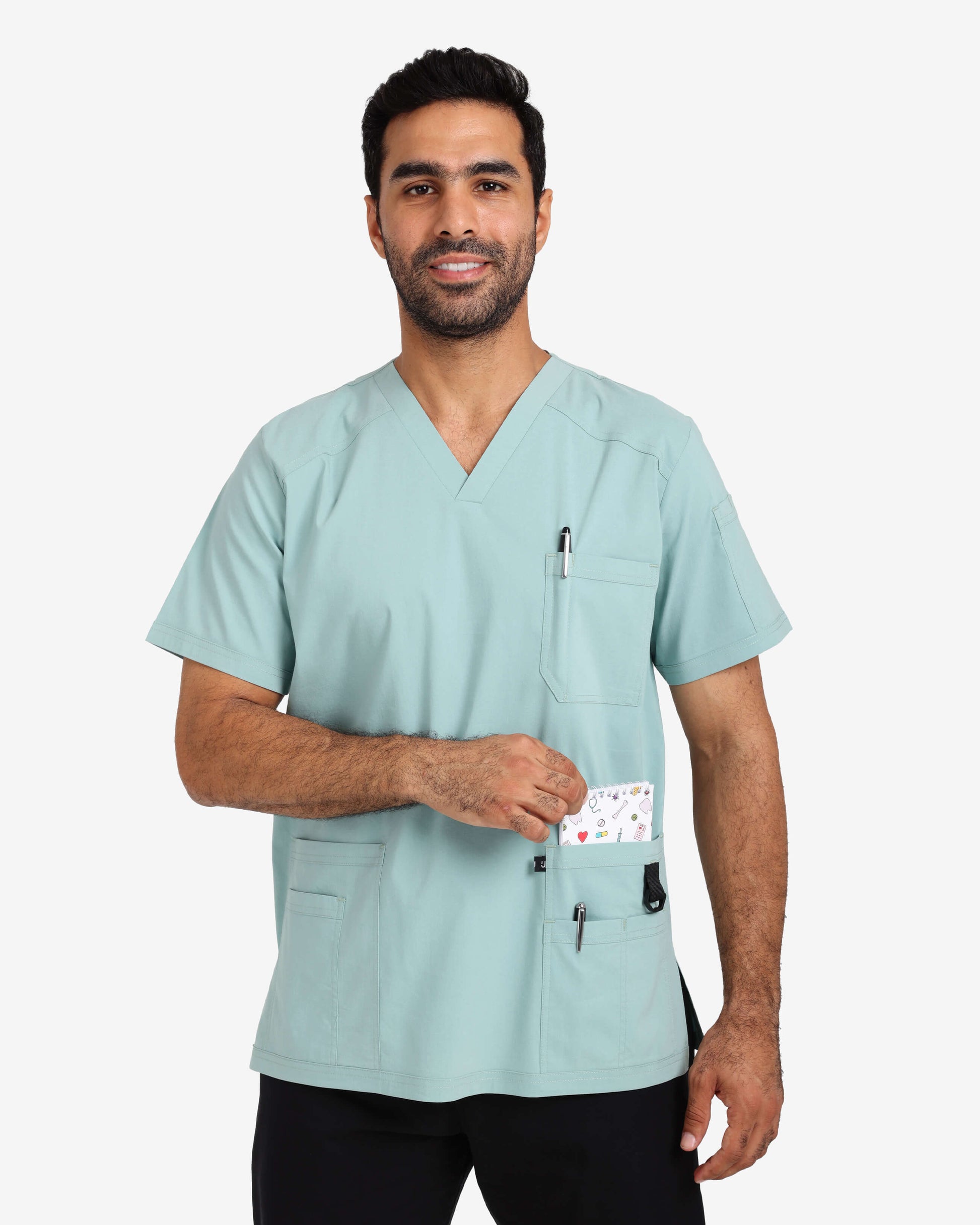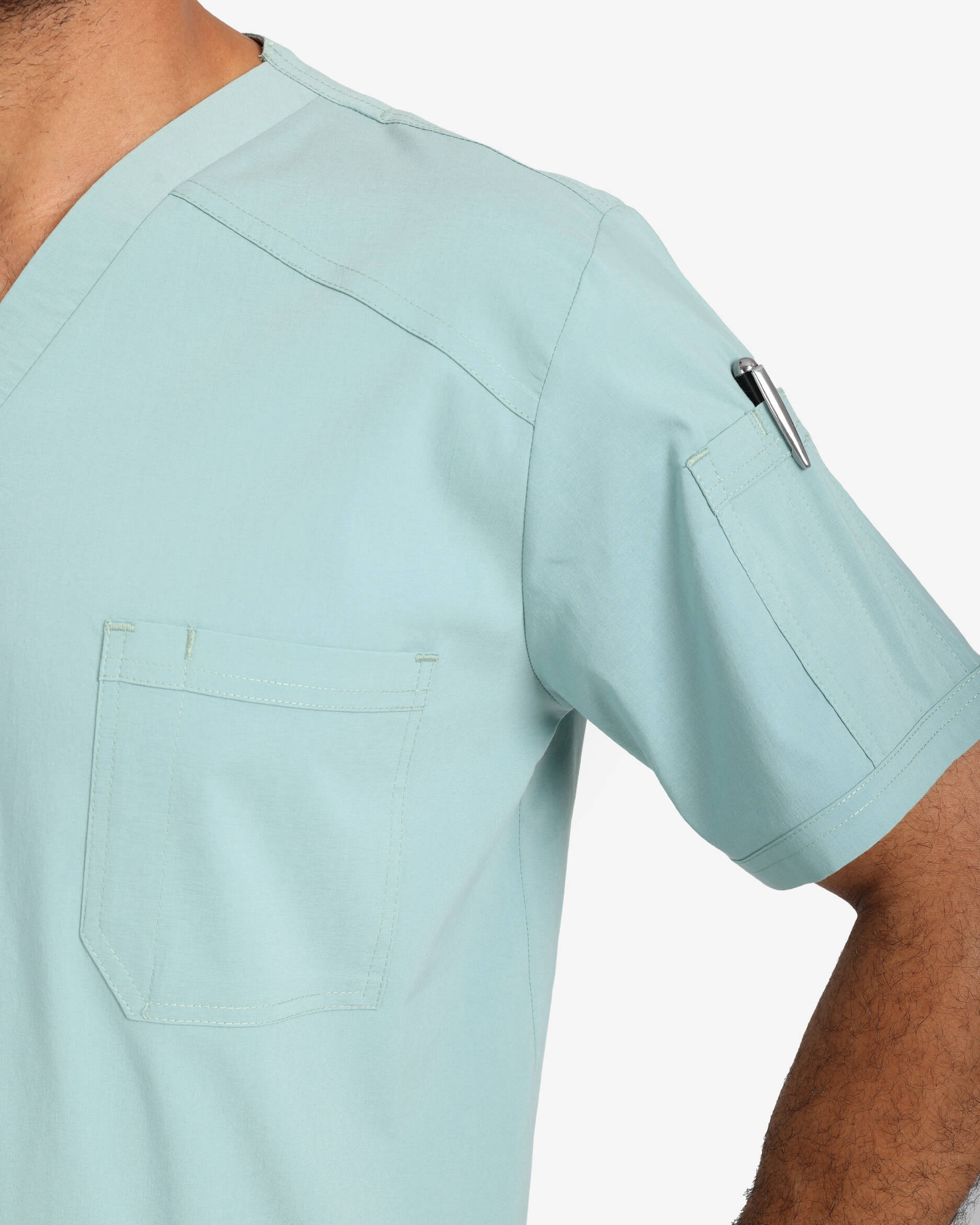 - تصميم جيب ذو ٧ قطع (١ جيب على الصدر ، وجيبين مزدوجين على الجانب وجيب على الأكمام)